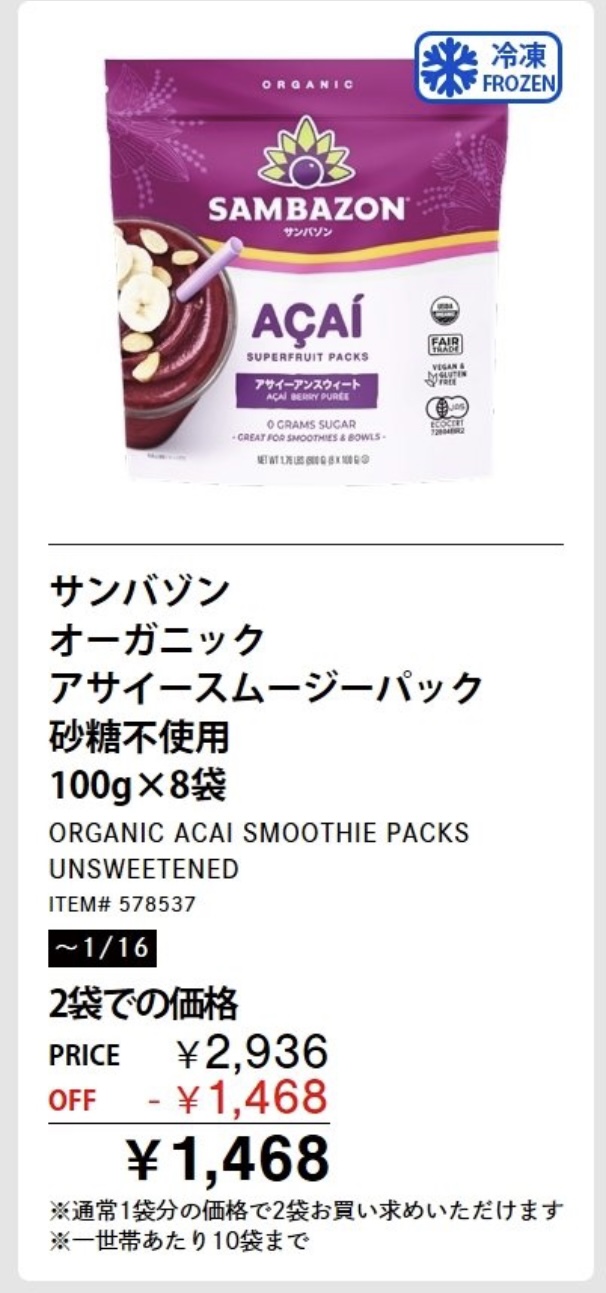 アサイーが安くなったのに、